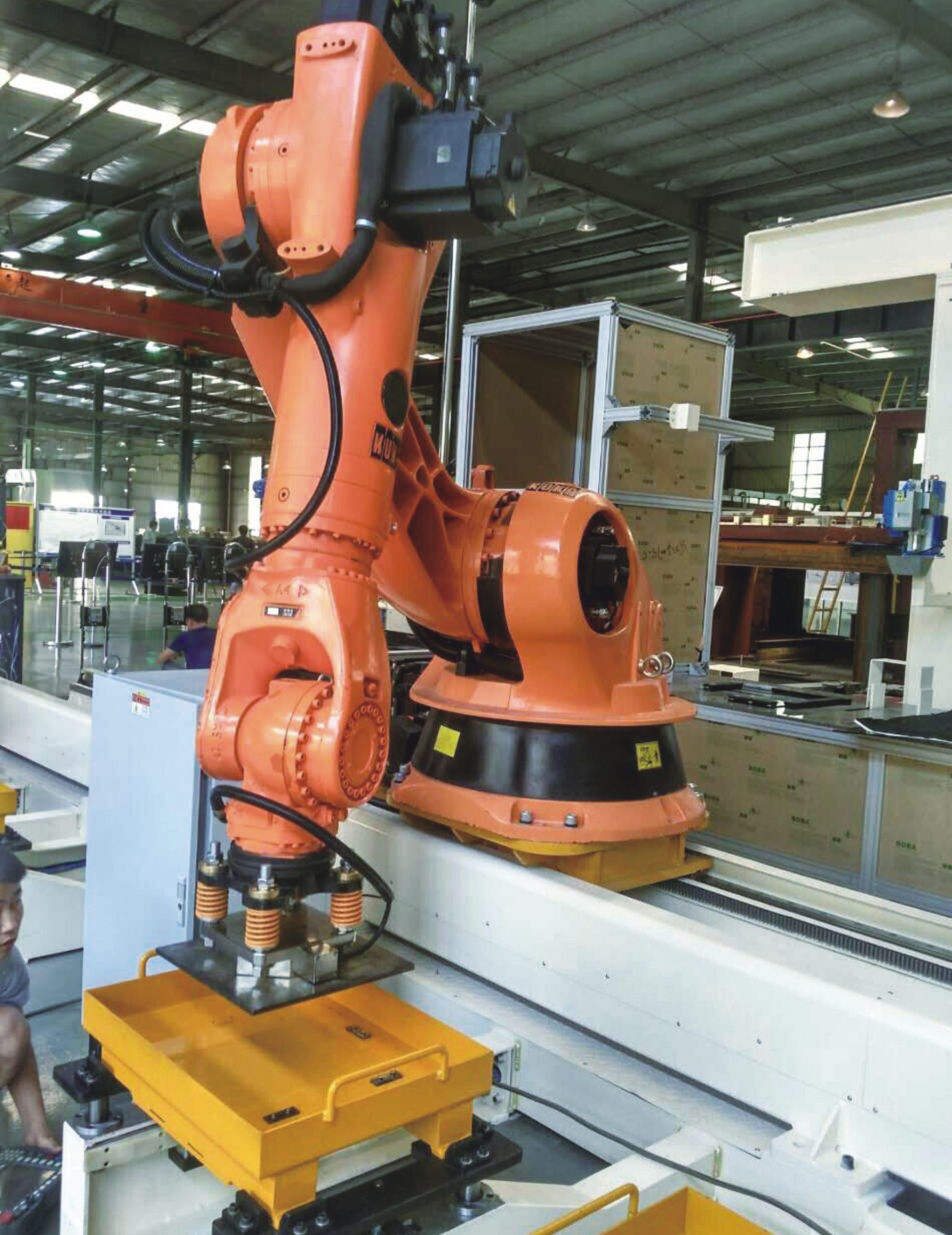 There’s a special place about the new magnetic gripper used for KUKA robot, that it has a gripping device that can pick up the damp-proof plastic panel, when the spools on it were all been transferred.