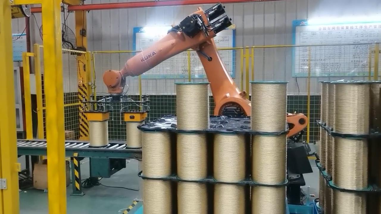 As the title suggests, this article centers around the story between customized magnetic grippers used for robots, and KUKA, about how they function in the packing line of a workshop that manufactures steel wire for radial tire.