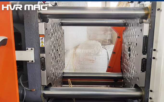 Magnetic platens for mold clamping are installed on each side of the base plate of injection molding machine to fixate the mould when the machine is working. Also, for a quick mold changeover.